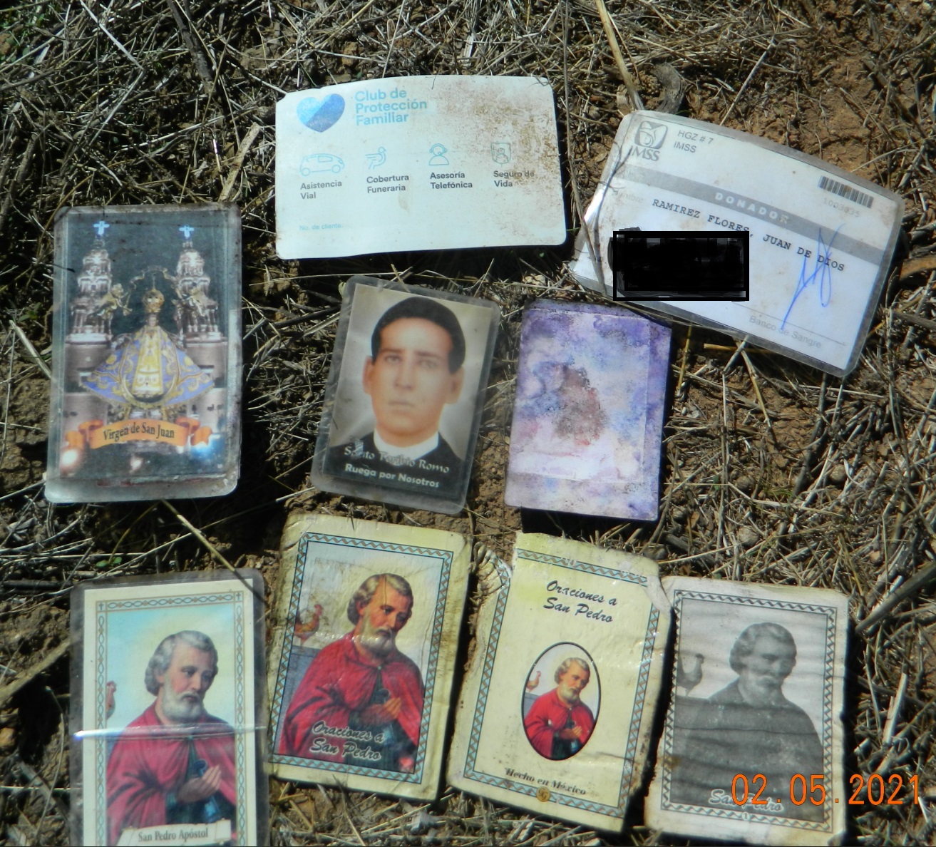 Personal effects recovered nearby included a black wallet, a cell phone and chargers, assorted cards, and at least one faded wallet-sized photograph.[1]